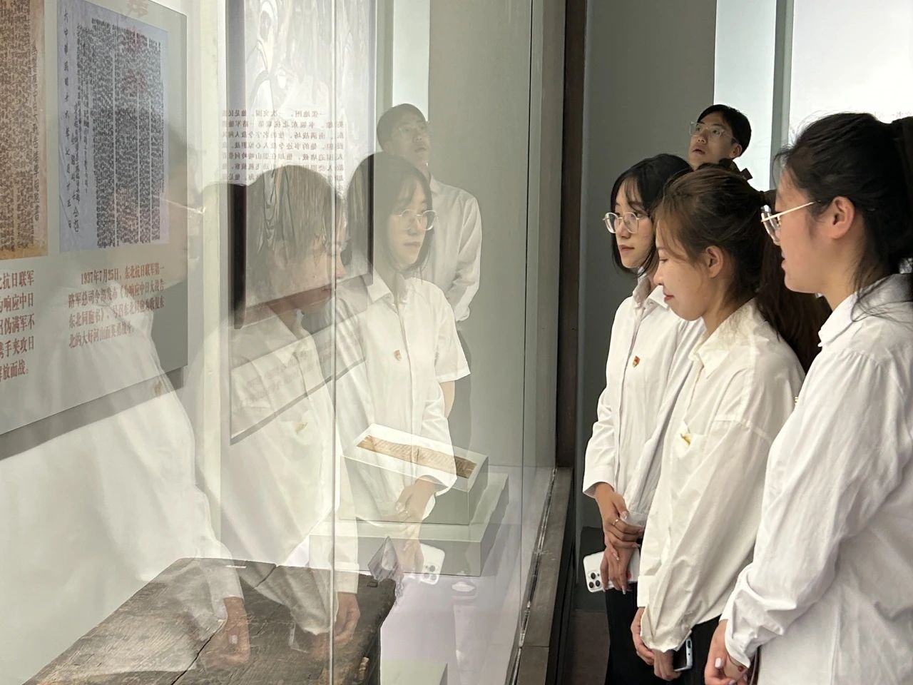 为深入学习贯彻党的二十大精神,常态长效开展党史学习教育,引导学生党员知史爱党、知史爱国、自信自强,9月9日,健康beat365中文官方网站学生党支部组织开展参观吉林省博物院“誓言如初”东北抗联故事专题展党日活动,进一步筑牢政治忠诚,汲取信仰力量。