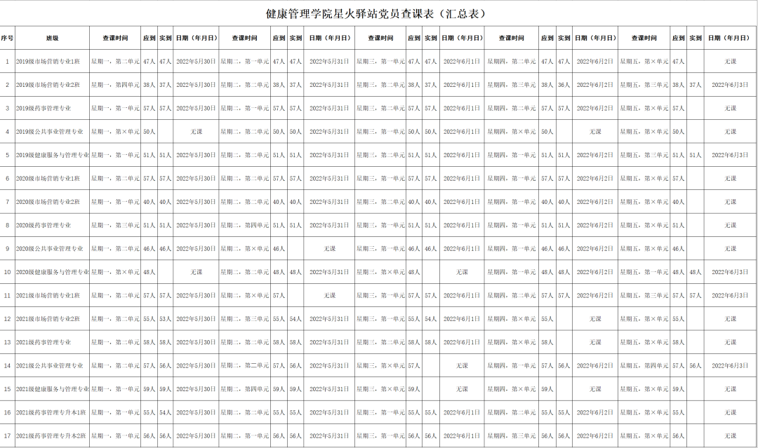 出勤率较好的班级有:2019级市场营销专业1班(出勤率100%)、2019级药事管理专业(出勤率100%)、2019级公共事业管理专业(出勤率100%)、2019级健康服务与管理专业(出勤率100%)、2020级市场营销专业1班(出勤率100%)、2020级市场营销专业2班(出勤率100%)、2020级药事管理专业(出勤率100%)、2020级公共事业管理专业(出勤率100%)、2020级健康服务与管理专业(出勤率100%)、2021级市场营销专业1班(出勤率100%)、2021级药事管理专业(出勤率100%)、2021级健康服务与管理专业(出勤率100%)、2021级药事管理专升本1班(出勤率100%)、2021级药事管理专升本2班(出勤率100%)。