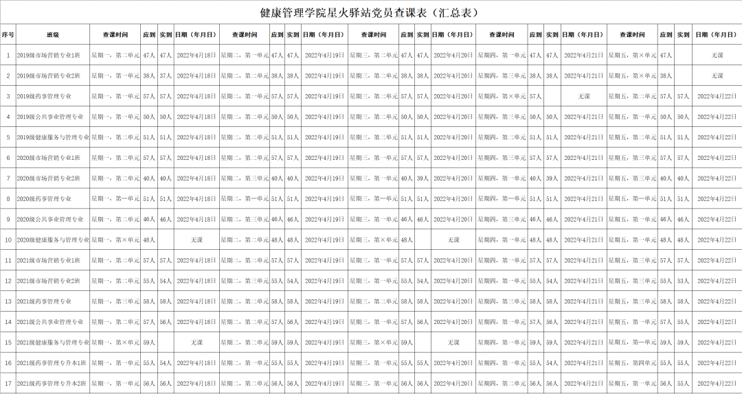 【三服务三提升】健康beat365中文官方网站学生党员第七周查课结果通报
