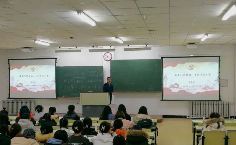 2020年11月24日,健康beat365中文官方网站党校第六期学生入党积极分子培训班在行知楼2204教室举行,邀请到健康beat365中文官方网站学生工作办公室副主任兼团委书记王乐然老师作题为《端正入党动机,争取早日入党》的专题党课。