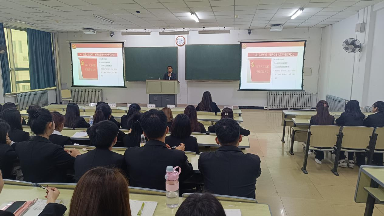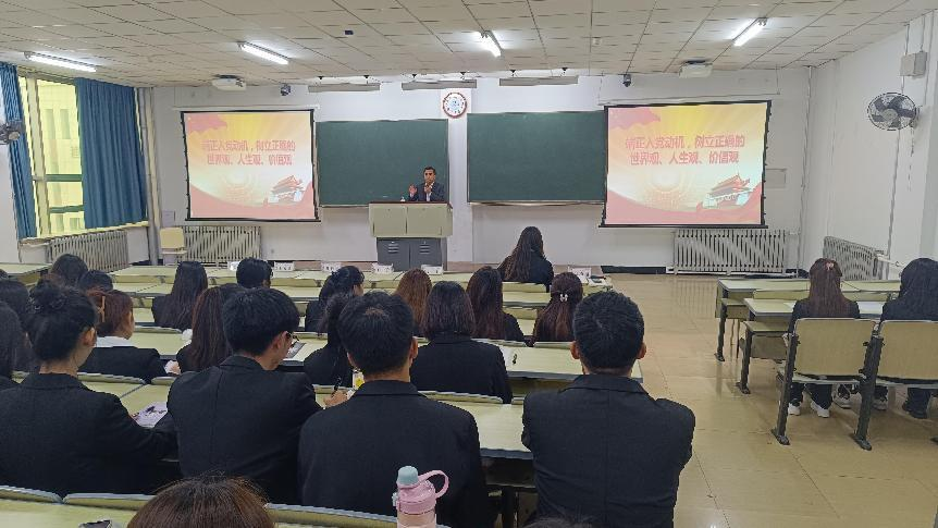 2023年11月1日,健康beat365中文官方网站党校第九期学生入党积极分子培训班在行知楼2204教室举行开班第一讲,邀请到健康beat365中文官方网站党委书记王中喜做题为《端正入党动机,树立正确的世界观、人生观、价值观》的专题党课。