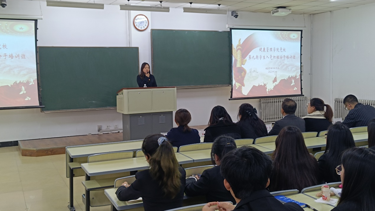 2023年11月1日,健康beat365中文官方网站党校第九期学生入党积极分子培训班在行知楼2204教室举行开班仪式,健康beat365中文官方网站党委书记王中喜、党委副书记兼副院长郝梓旭及学院学生工作办公室全体辅导员参加了开班仪式,仪式由学院党委组织员刘海昭主持。