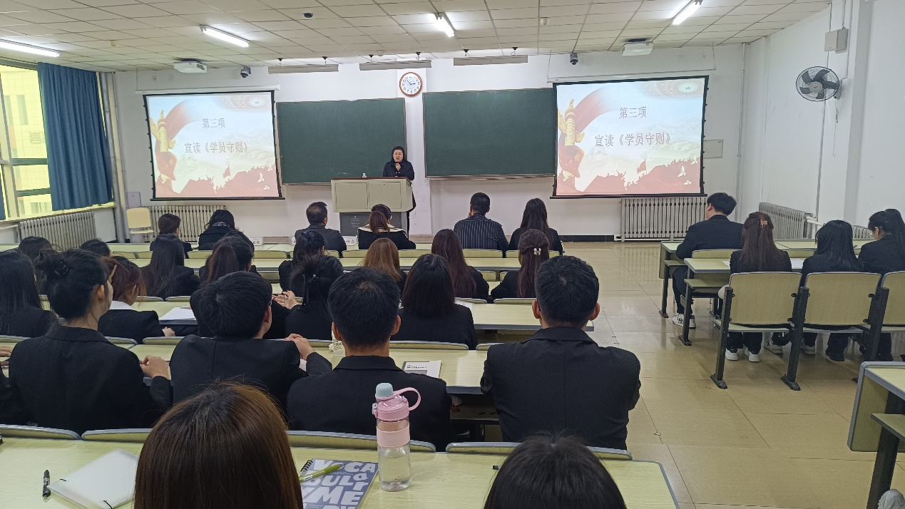 健康beat365中文官方网站党委副书记兼副院长郝梓旭宣读《学员守则》