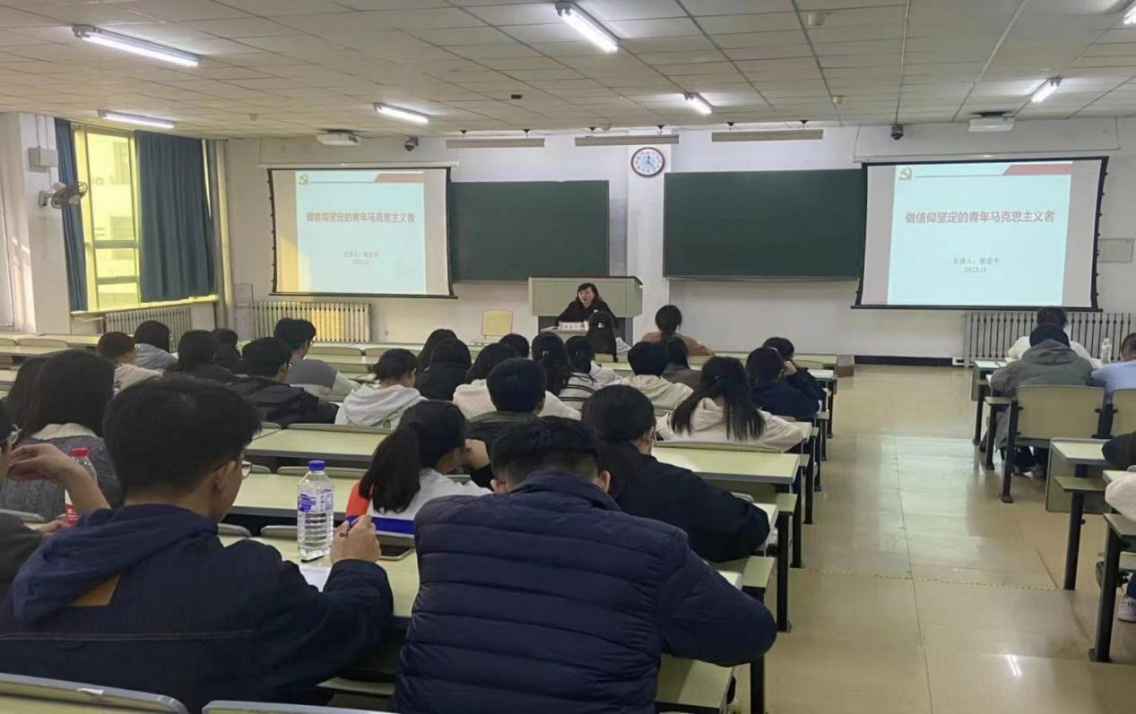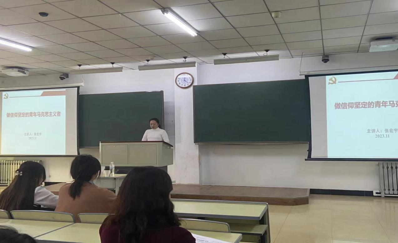 2023年11月2日,健康beat365中文官方网站党校第九期学生入党积极分子培训班在行知楼2204教室开展第二讲,邀请到青年马克思主义者培养学院专职副院长张宏宇做题为《做信仰坚定的青年马克思主义者》的专题党课。