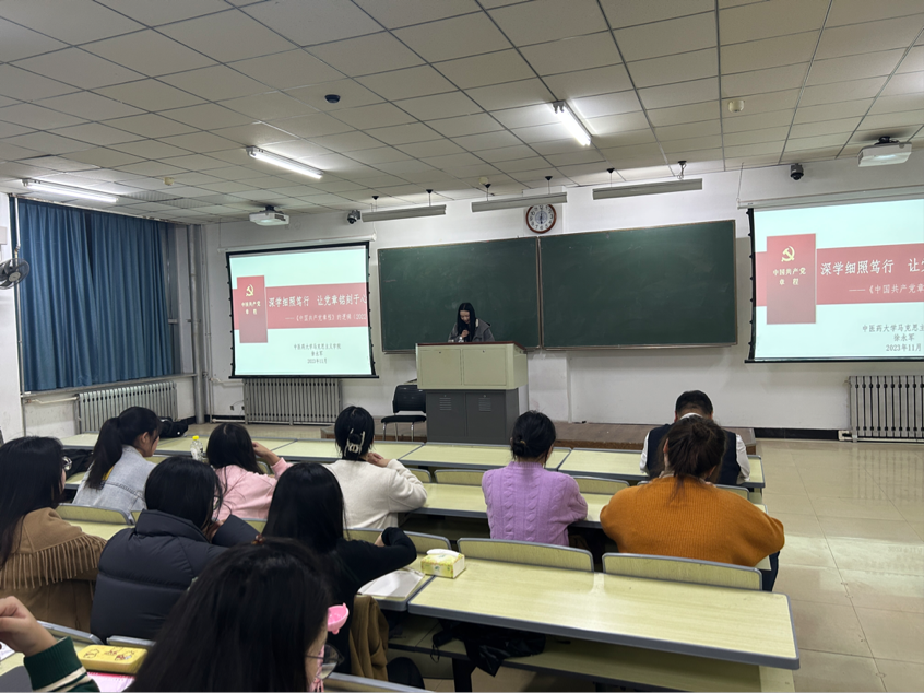 2023年11月2日,健康beat365中文官方网站党校第九期学生入党积极分子培训班在行知楼2304教室开展第三讲,邀请到青年马克思主义者培养学院党总支书记徐永军教授做题为《深学细照笃行,让党章铭刻于心》的专题党课。