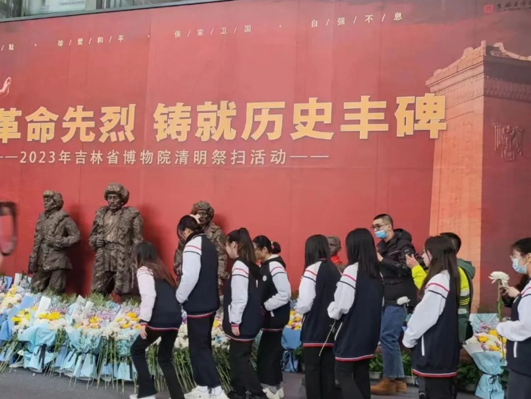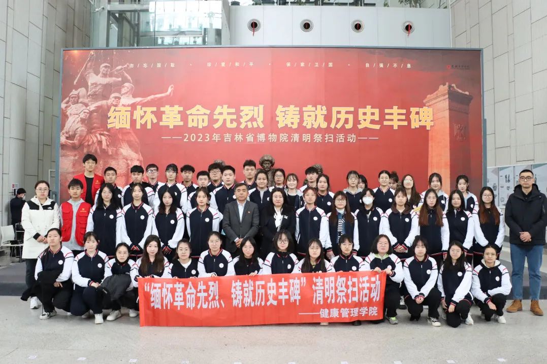 为传承中华民族优秀传统文化,弘扬英烈精神,加强学生的爱国主义教育,使学生深入了解中华民族的革命历史和自强不息的民族精神,2023年4月4日,健康beat365中文官方网站赴吉林省博物院开展了“缅怀革命先烈·铸就历史丰碑”清明千人祭扫活动。学院党委书记王中喜、党委副书记兼副院长郝梓旭、五十余名学生代表参加此次活动。