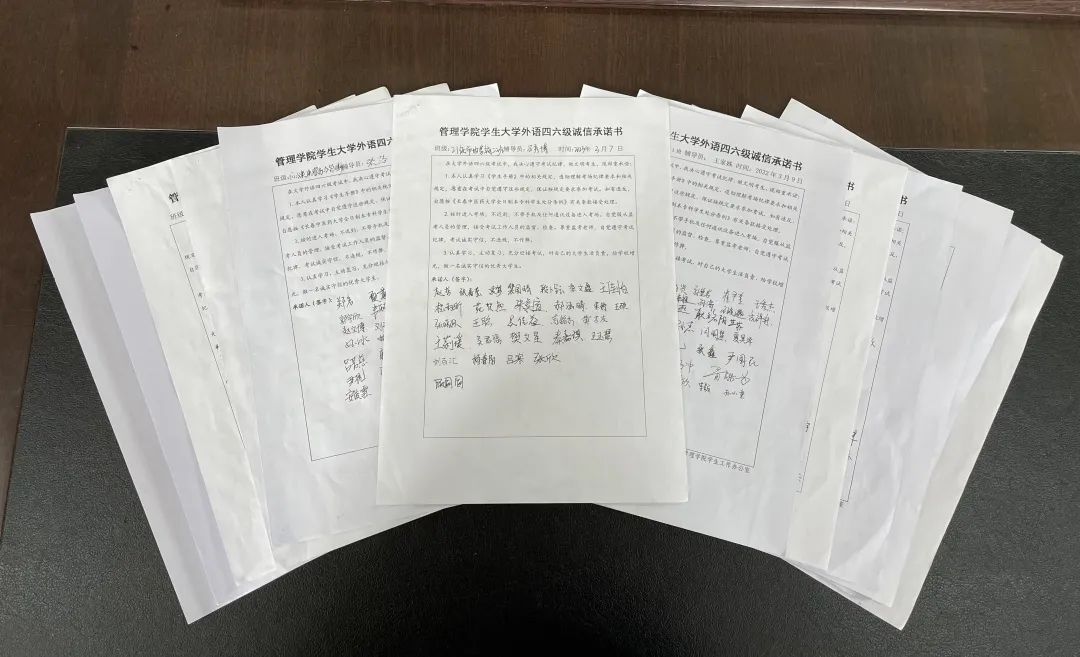 为进一步加强学风建设,严肃考风考纪,3月8日至11日,学院全体学工干部在大学英语四六级考试、期末考试前夕召开了“诚信考试教育”主题班会,并签订了《考试承诺书》。