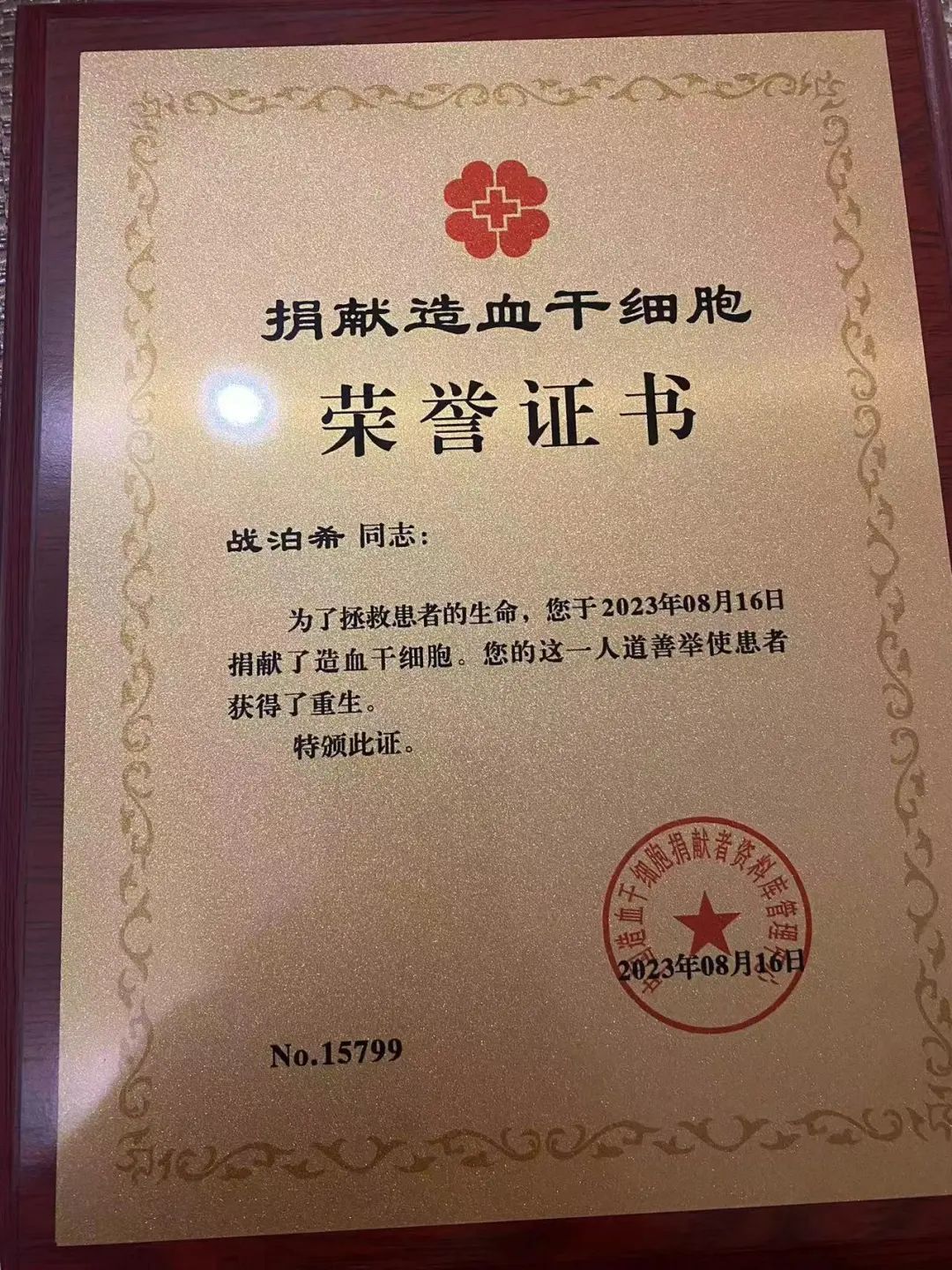 8月16日,我校健康beat365中文官方网站2023级公共卫生专业硕士研究生战泊希,在吉林大学第三医院成功进行造血干细胞捐献,他是我省第157例(全国第15799例)造血干细胞捐献者。