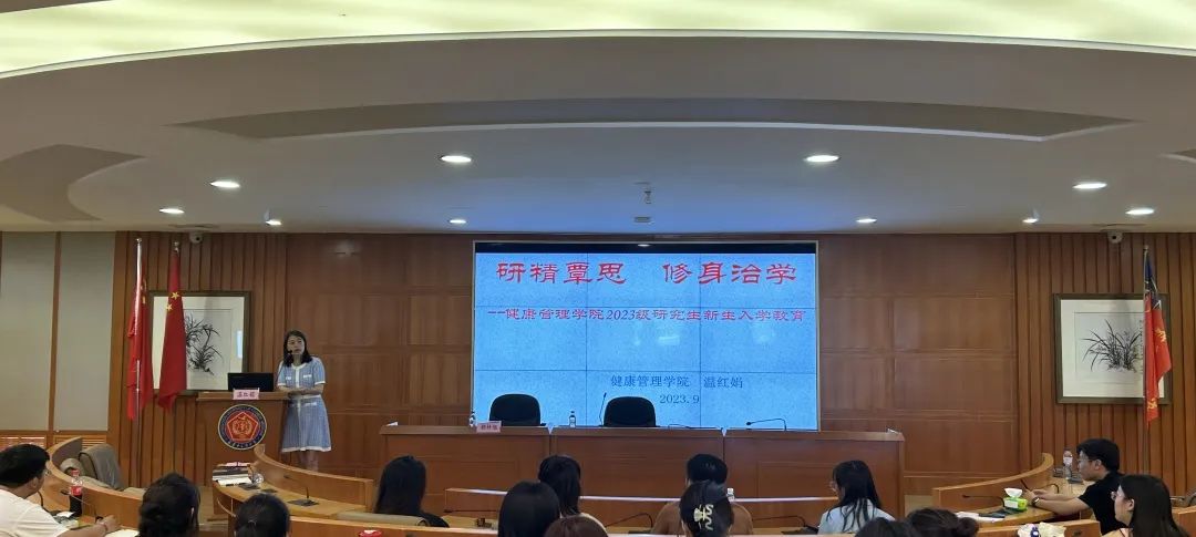 第二阶段,温红娟院长以“精研覃思·修身治学”为主题开展了入学教育,温院长对2023级研究生加入健康beat365中文官方网站表示欢迎,以我校校训“启古纳今 厚德精术”展开今天的入学教育,告诉同学们要保持对学习的热情,要有远大的学术志向、有宽广的学术视野、有科学的学术方法,更要有知行合一的家国情怀。