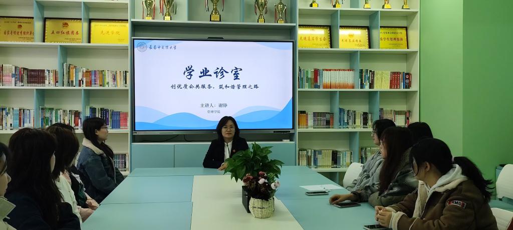 11月27日,beat365中文官方网站在半夏社区开展“创优质公共服务,筑和谐管理之路”主题学业诊室。本次活动邀请到beat365中文官方网站公共服务与管理教研室主任谢铮老师进行交流分享。