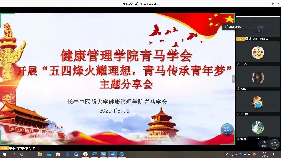 2020年5月3日,健康beat365中文官方网站青马学会通过腾讯会议进行了此次疫情期间第三次分享会暨“五四烽火耀理想,青马传承青年梦”主题分享会。