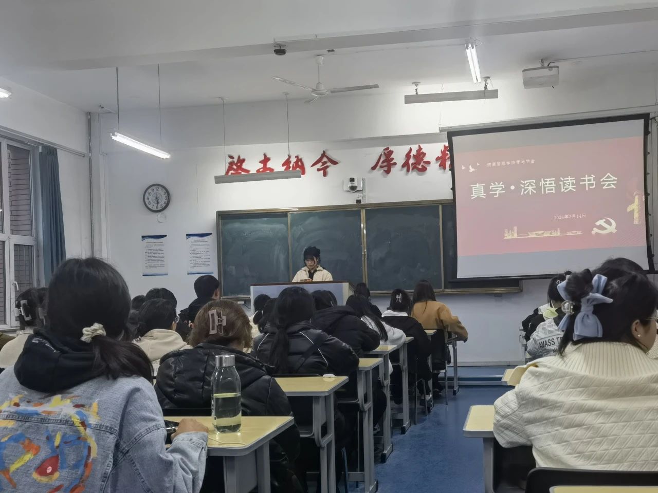 2024年3月14日,健康beat365中文官方网站青马学会在致知楼1101教室开展读书会。此次青马学员同读一本书——《我们为什么看好中国》。读书会期间,刘海昭老师到场参与活动并对新学期青马学会工作进行部署,鼓励青马学员积极参与活动,相互学习成长,以热情饱满的精神状态投入到新学期的学习之中。