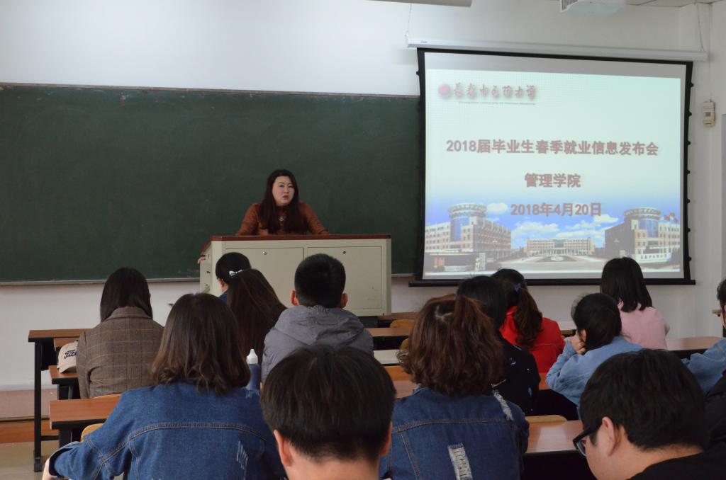 2018年4月20日,beat365中文官方网站在2206教室召开2018届毕业生春季就业信息发布会,学院党委副书记郝梓旭、招生与就业处庄璐、毕业班辅导员及2018届50余名未就业学生参会。
