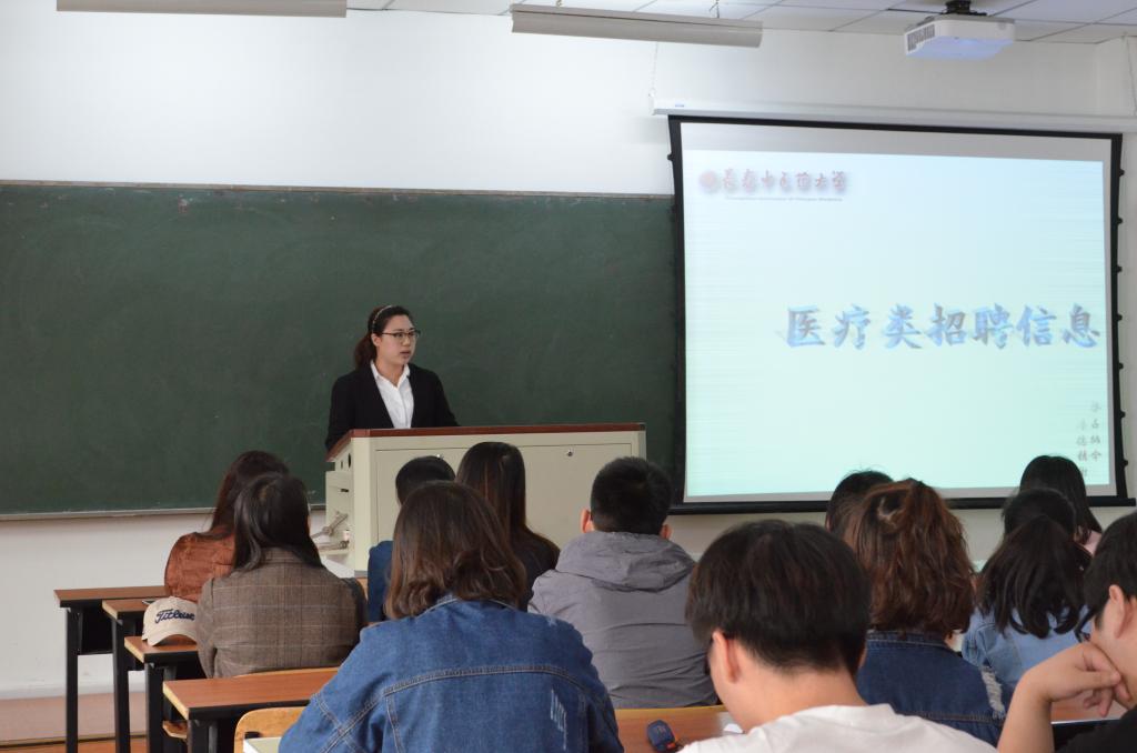 毕业班辅导员于阳向学生详细介绍了4月21日来我校参加就业洽谈会用人单位的基本信息、提供岗位、需求专业和薪资待遇,希望同学们明确自己的就业意向,多关注丁香人才网和各地人社局网站相关招聘信息。