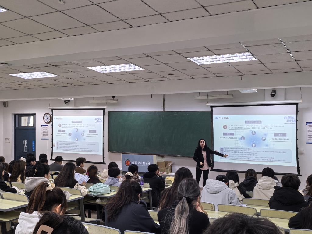 招聘会开始前,成都康弘药业集团股份有限公司的宣传片使同学们对公司有了初步认识。宣传片播放完毕,招聘会正式启动,康弘药业人力资源部张经理详细阐述了企业发展历程、学生发展路线和岗位要求,为同学们勾勒出明晰的职业画卷。接着,优秀校友上台分享经验,公司高管们和同学们热情互动,现场氛围高涨,还有互动礼品激励同学们追逐梦想。最后,现场简历投递与初试环节将招聘会推向高潮,同学们心怀梦想,坚定地朝着心仪岗位迈出有力步伐。